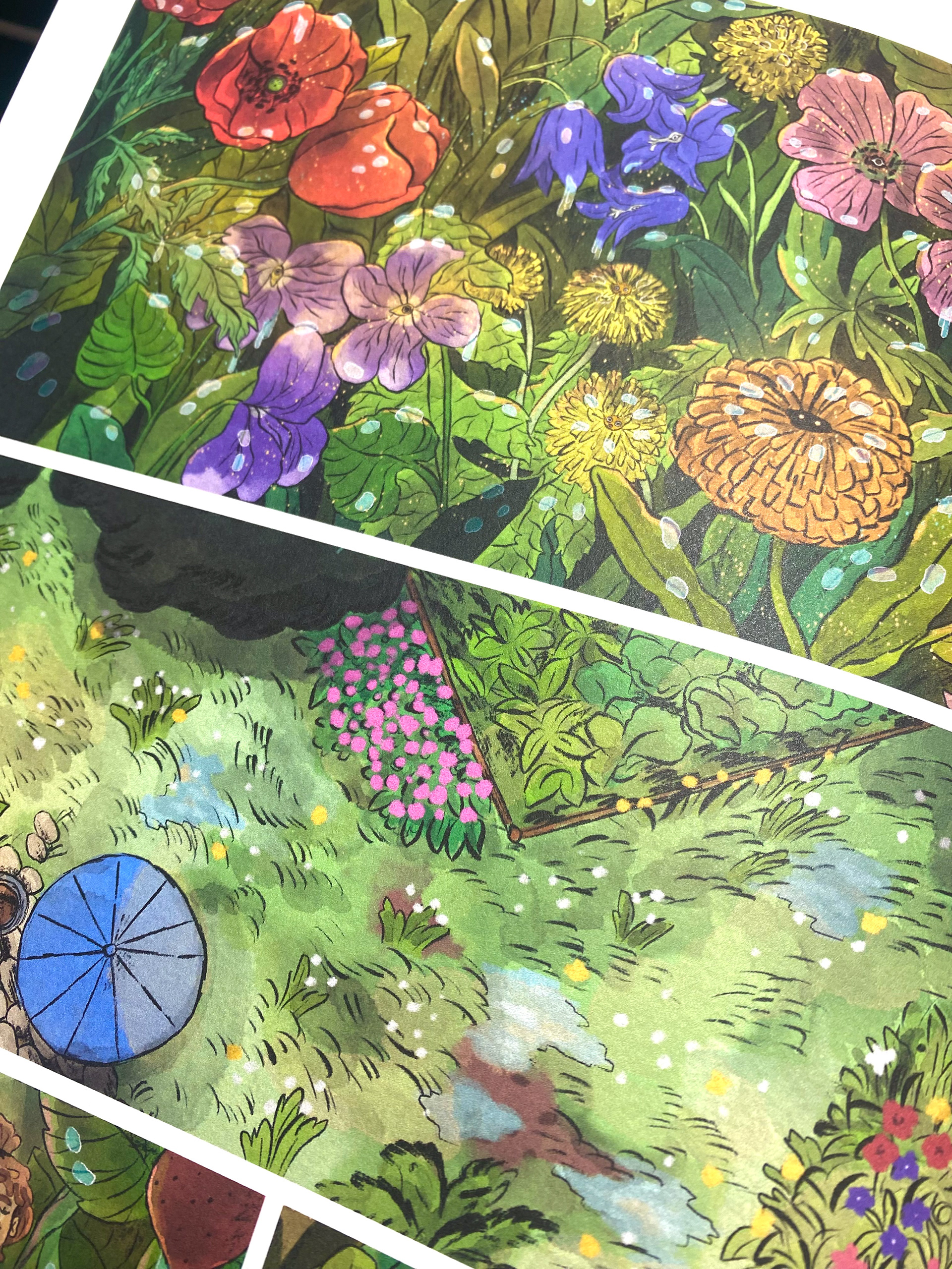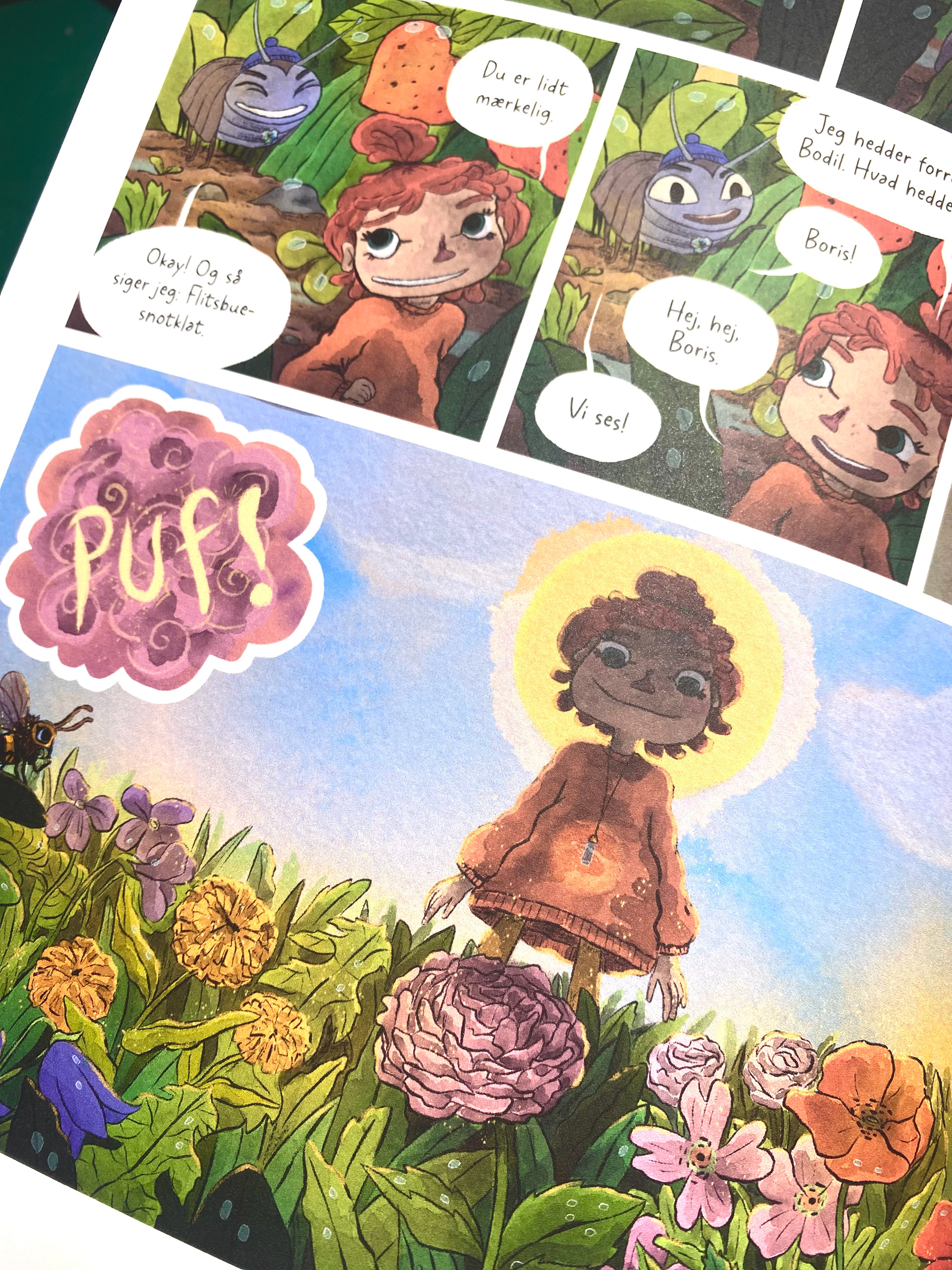 A small comic about Bodil who shrinks and enters her grand mothers flower bed. Coming in 2025.