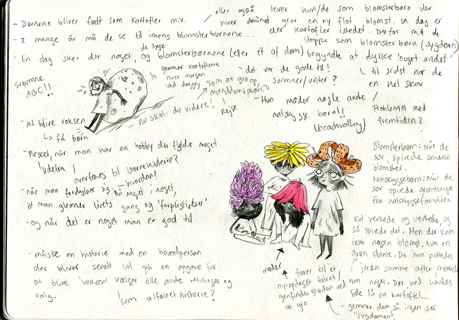This is the ideas, sketching and pre-production of my published childrens book 'Natskyggebørnene'.